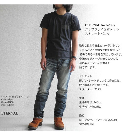 【送料無料】 ETERNAL(エターナル) 備中倉敷工房 ジップフライ 5ポケット ストレートパンツ 日本製 デニム ジーンズ Gパン ジーパン メンズ 52092 【楽ギフ_包装】