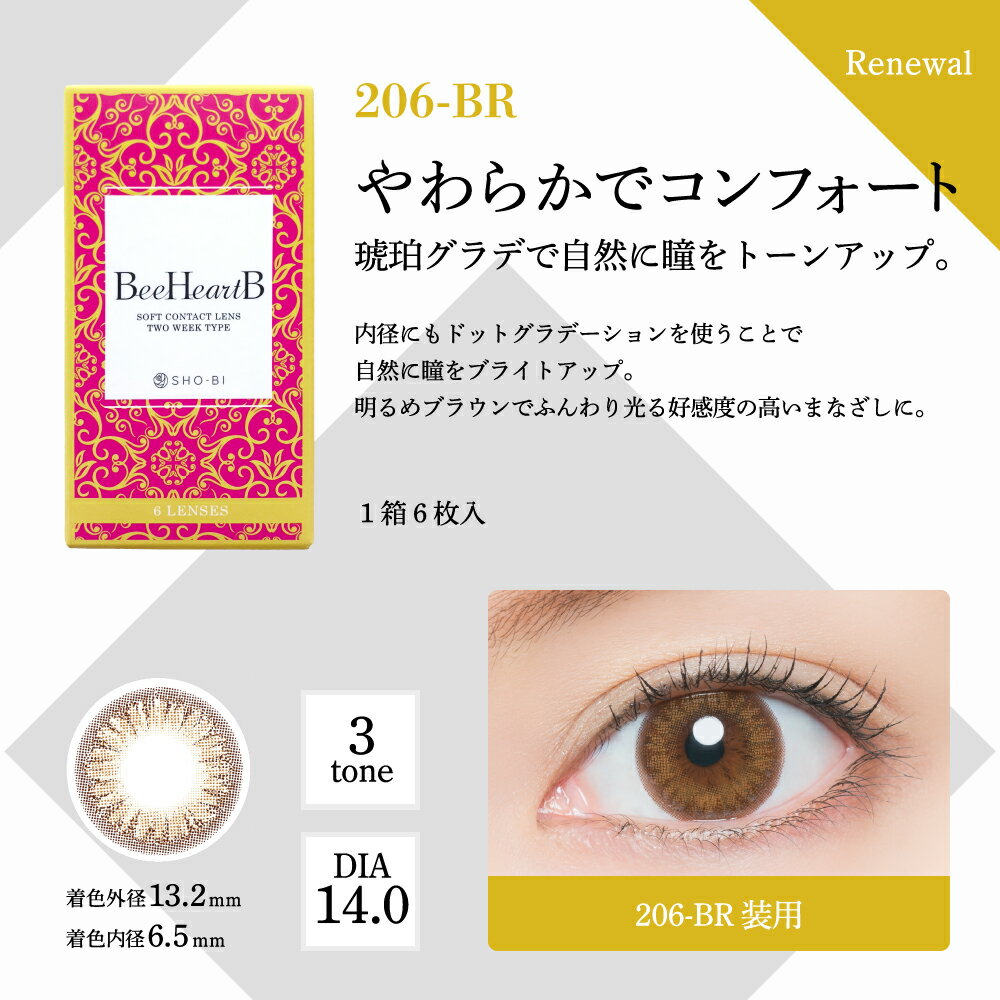 【10%OFFクーポン】 カラコン ビーハートビー 2week (1箱6枚) 201-BR/206-BR 【ネコポス送料無料&ケア用品プレゼント】 2週間使い捨て ( コスメコンタクト カラコン 度あり 度なし BeeHeartB 2week 14.0mm コンタクトレンズ 2ウィーク ◎ )